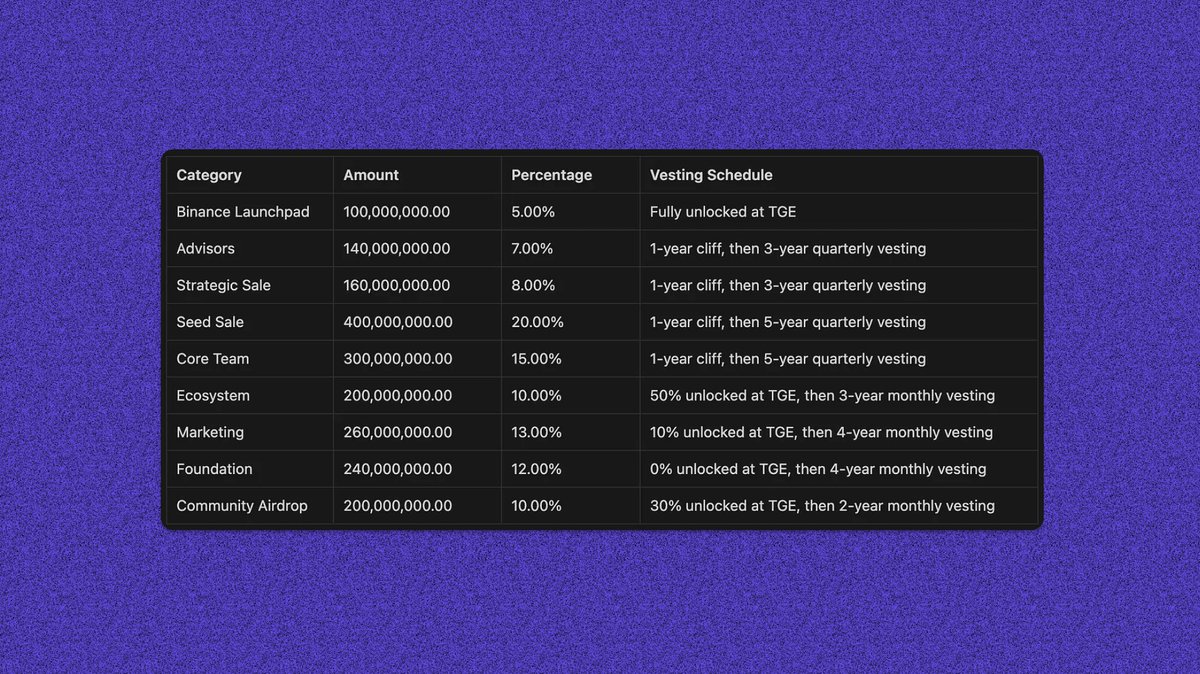 Airdrop tokens will be unlocked 30% on TGE and there will be a 2-year monthly vesting after that.