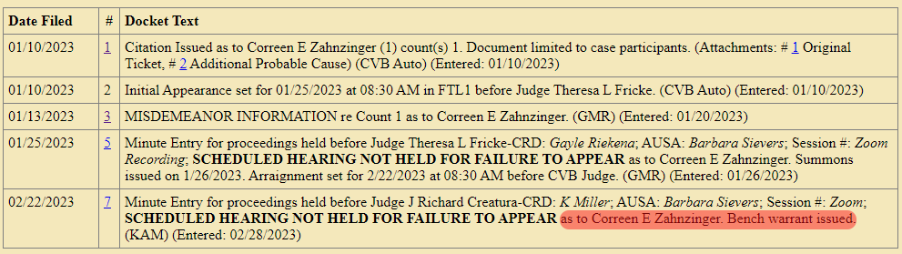 And let's not forget this little gem; it's the definition of projection. Correen Zahnzinger has a criminal record for fraud and filed for bankruptcy twice. In 2015, when her second bankruptcy was discharged, she was one month away from turning 43.