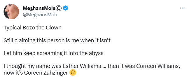 The person who operates this vile account is Correen Zahnzinger. She has been targeting Megan and Harry for over two years. In 1997, Correen filed a lawsuit alleging she didn't know the person she married was a woman, although they dated for two years...