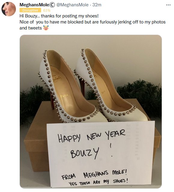 Before I go, let's not forget the time she tweeted 6-year-old counterfeit Christian Louboutin shoes to flex. She should've deleted her account after that.
