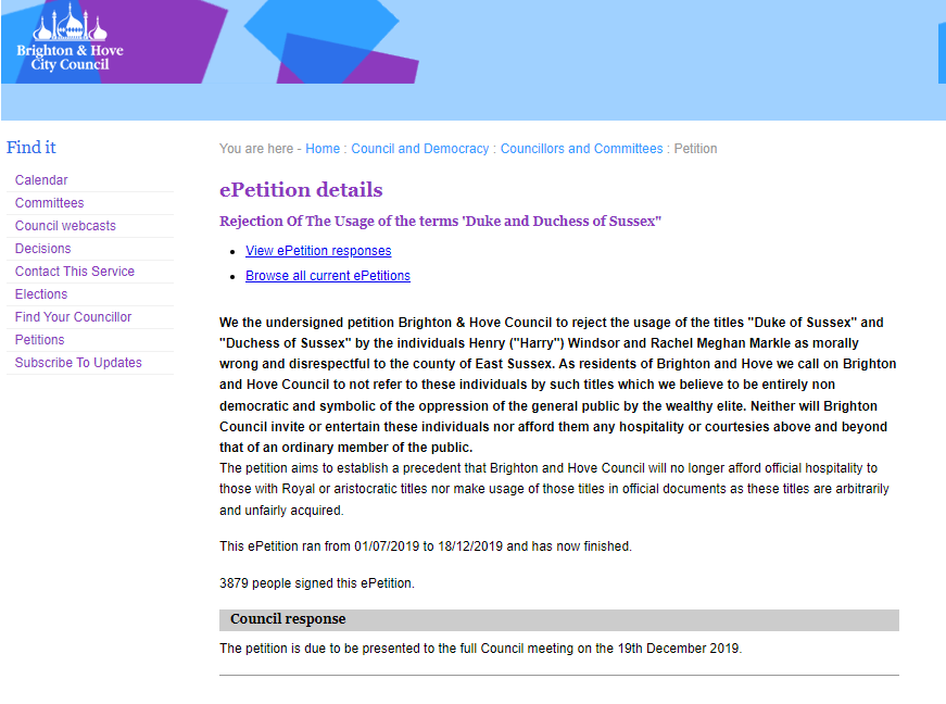 In 2019, a group of hate accounts targeting Meghan and Harry signed this petition. People who didn't live in Brighton and Hove signed the petition. Correen Zahnzinger signed the petition using her real name. She can't even cover her tracks well.