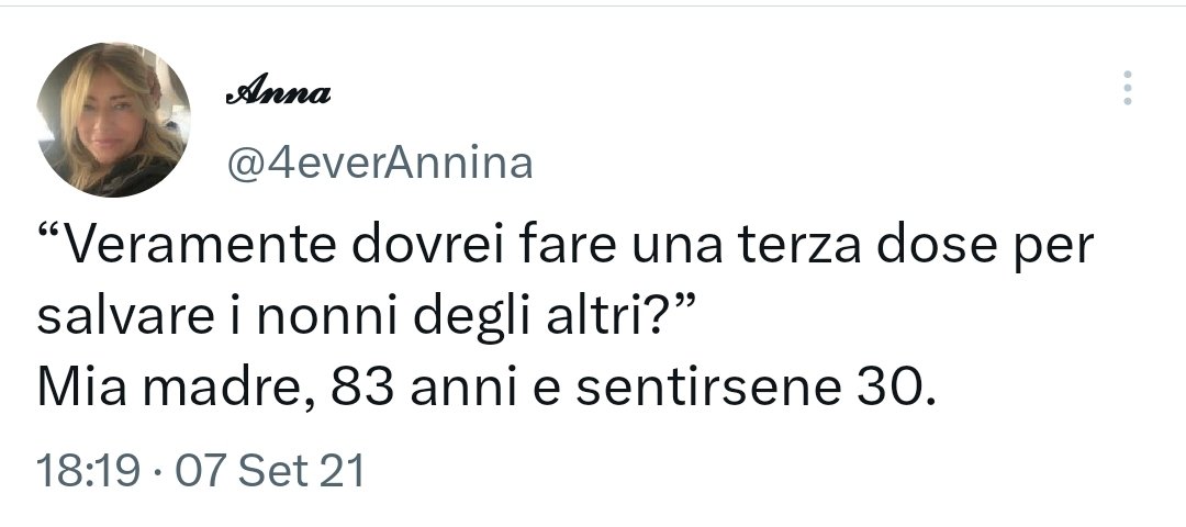 7 SETTEMBRE 21: la nonna ha fatto la seconda dose, ma stranamente sta da Dio. Si sente 30 anni, tipica sensazione da devastata.