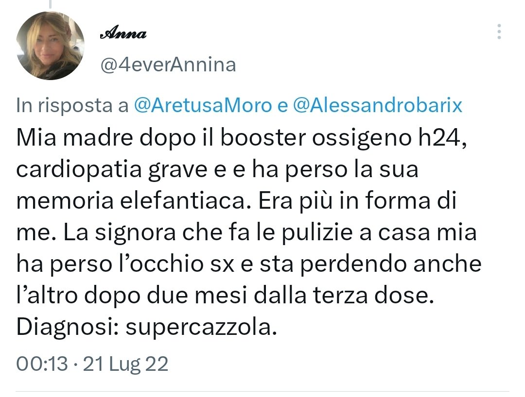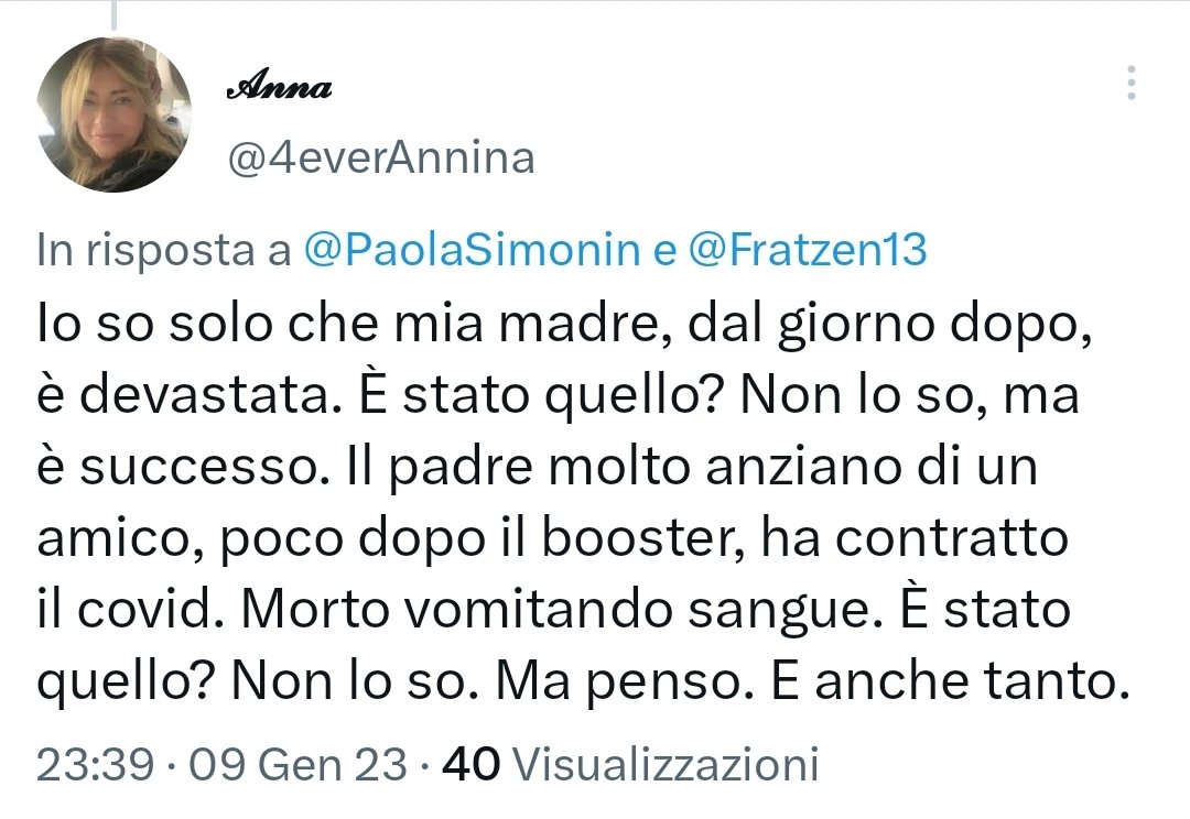 La povera @LarudeGertrude ha perso il papà, ancora giovane dopo la seconda dose. 1 settimana e sbam, morte improvvisa.