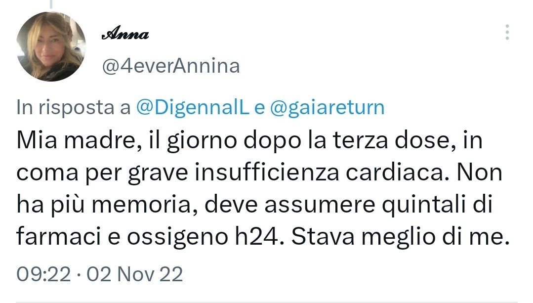Ad @4everAnnina madre devastata dopo la seconda dose.