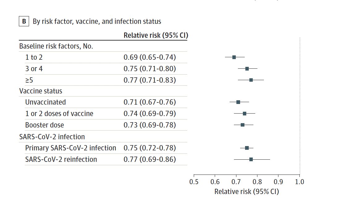These results apply to people who are eligible for Paxlovid under the current FDA EUA - that is people with at least 1 risk factor for progression to severe COVID-19