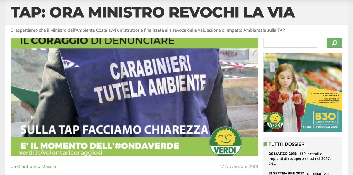 Qui invece è quando Bonelli chiedeva al ministro dell'Ambiente di revocare la Via (Valutazione di Impatto Ambientale) perché "il progetto TAP ha rappresentato non poche criticità ambientali sin dalle origini". 2/3