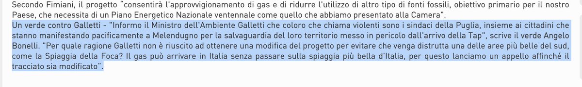 Pochi minuti fa in una diretta, dopo aver negato che ci sia stata un'emergenza gas, Angelo Bonelli negava anche di essere stato contro il TAP. E mi invitava a dimostrare il contrario. Qui è quando invocava il TAR (tra l'altro quelli sono tra i pochi ulivi salvati da Xylella). 1/3