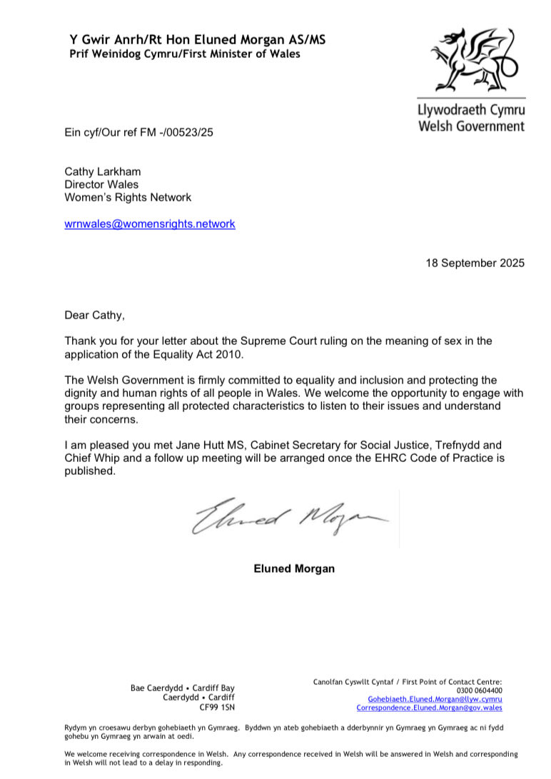 However, there is a complete failure to grasp the implications of the judgment now, the damage that is being wreaked on women’s rights in Wales, and no acknowledgment or apology to women’s groups.