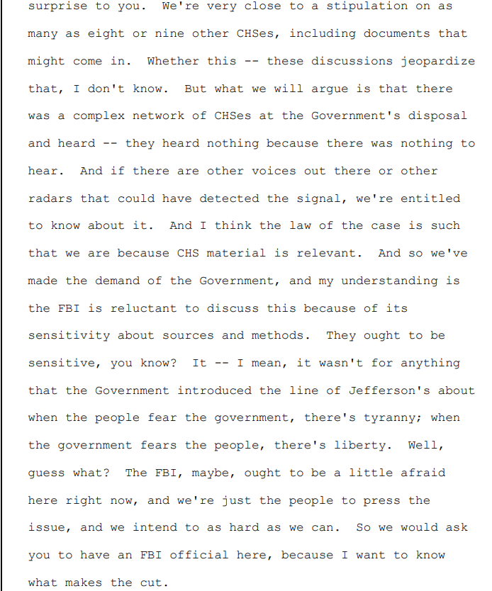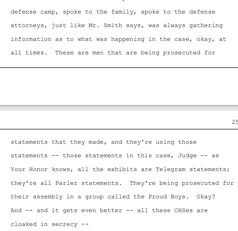DOJ claimed they didn't instruct the FBI informant to collect intel on defendants, attys, etc but here's one defense attorney telling Judge Kelly about her outreach to him: