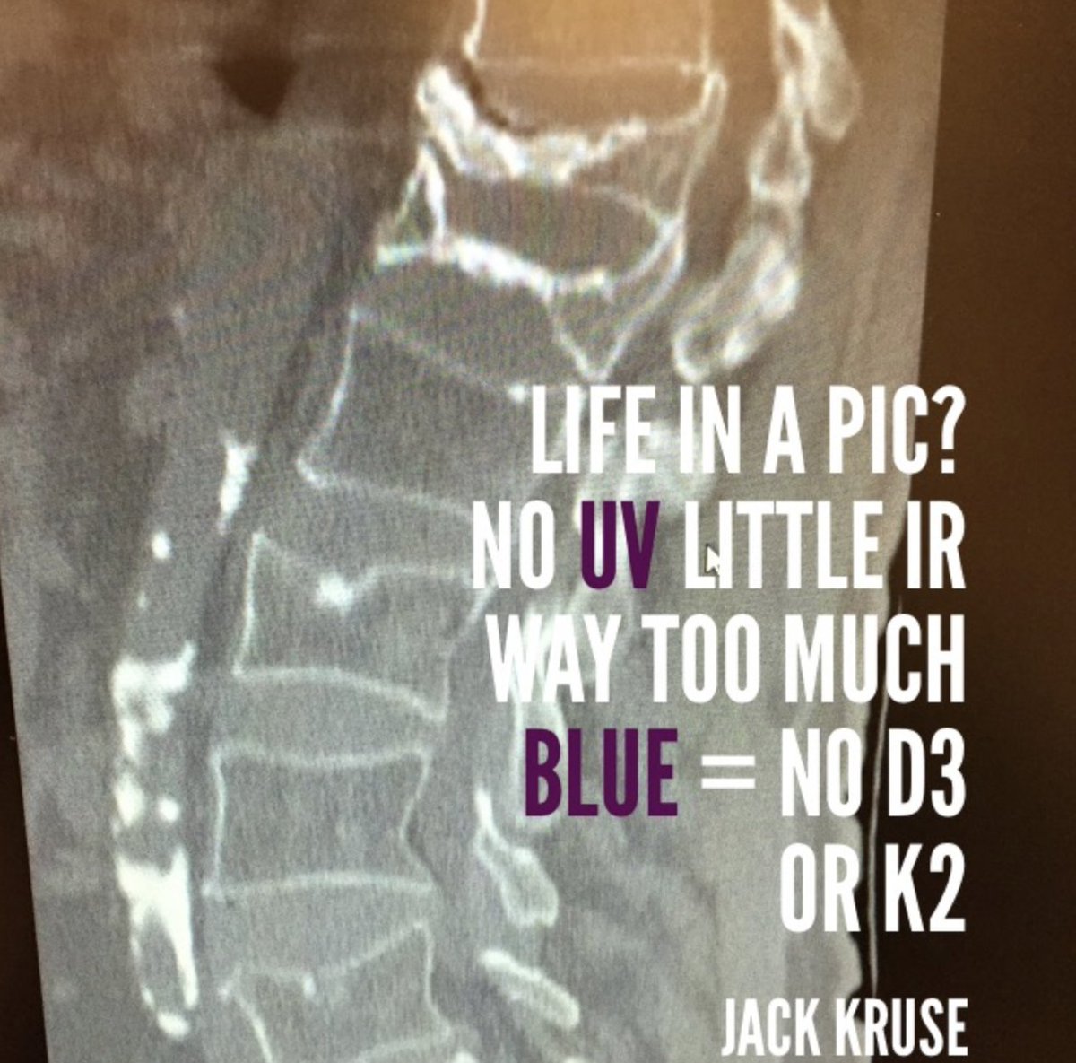 2. The picture above shows osteoporosis, two fractures, and an aorta calcified from a lack of UVA/UVB light assimilation in the skin and plasma that lowered Vitamin D3 and the Vitamin K2 cycle. The patient also has neurodegeneration and heart disease. Both D3 & K2 are made after… twitter.com/i/web/status/1…