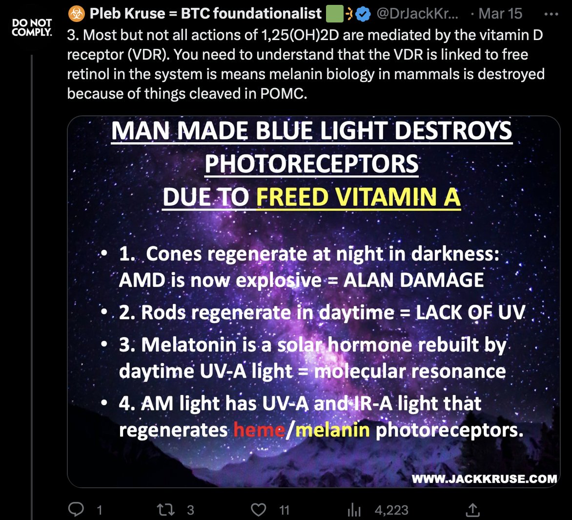 22. Photosynthesis forms the basis of all food webs on the planet. Light from the sun preceded food and DHA preceded photosynthesis and the Cambrian explosion. Therefore the sequence of events makes it likely and probable that light trumps food at all levels of biological… twitter.com/i/web/status/1…