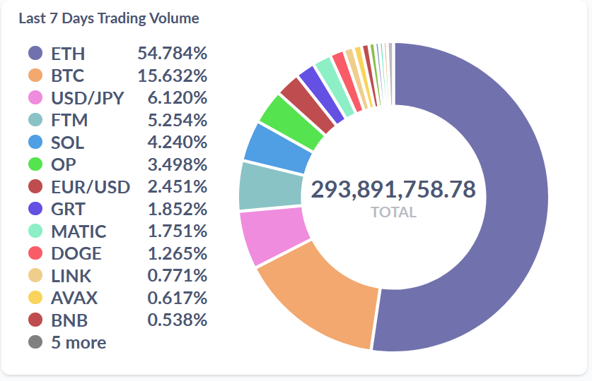 Despite routing trades between Gains Network, GMX and MUX, the lion's share of the volume was routed through the MUXLP due to the pool having the lowest trading costs.