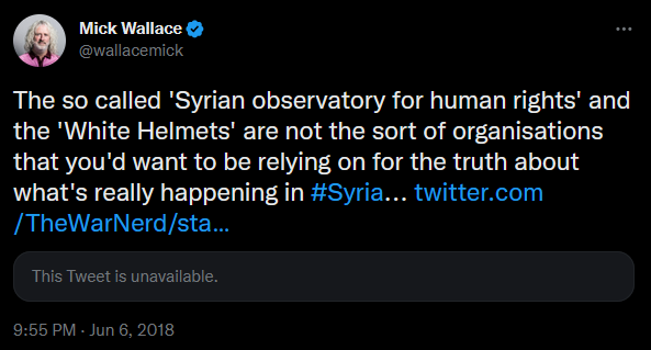 Wallace's views also line up perfectly with folk from the fake news blog The Grayzone: he's supported Venezuela, China, Russia, Belarus and Syria during his period as an MEP.