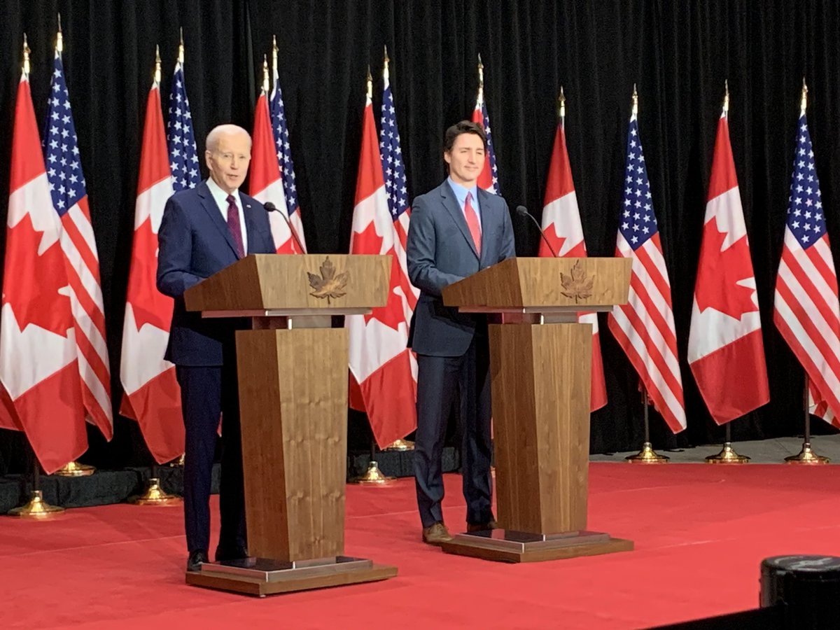 On the inflation reduction act, Biden says he doesn’t get how Canada is at a disadvantage with the U.S. subsidies. He says “we each have what the other needs.” Ie. he says Canada has the raw critical minerals and U.S. has processing capacity