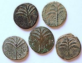 Bu antik bronz paralar M.S. 1.Yüzyılda Romalılar tarafından ele geçirilen Judea'da (Filistin) basılmış.