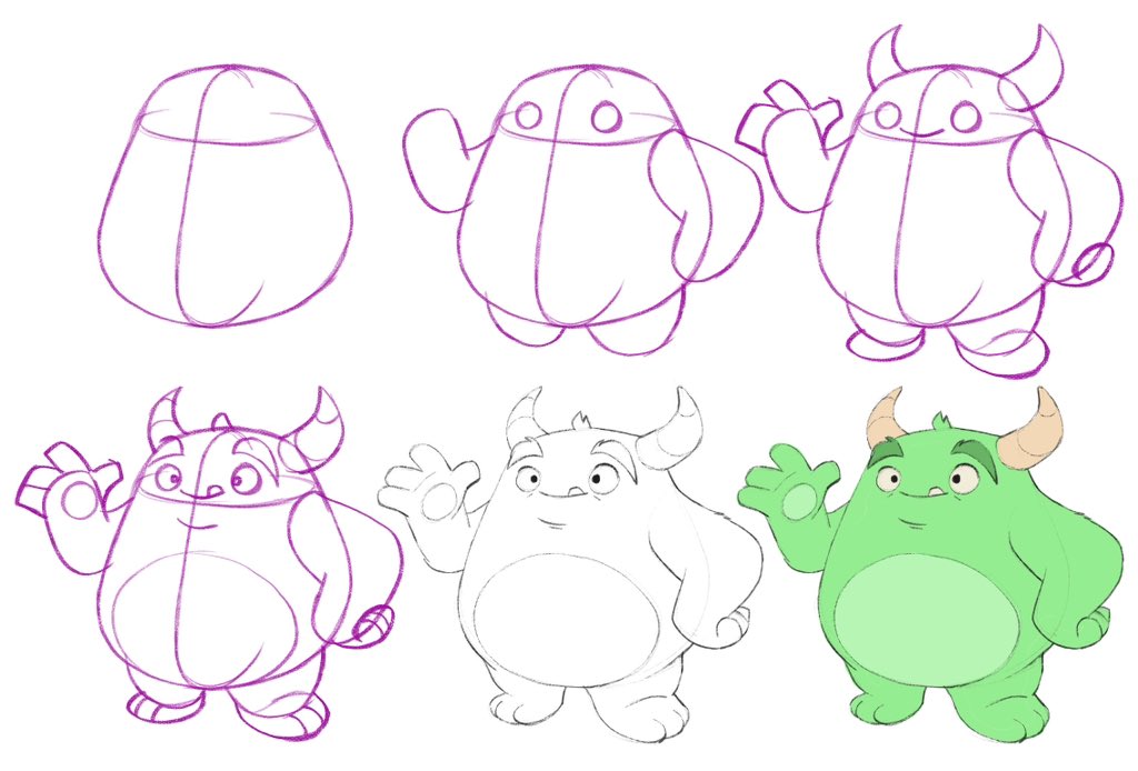 How to use shapes to draw characters! Great for when your stuck. A video & thread with tips. 1/6 🧵