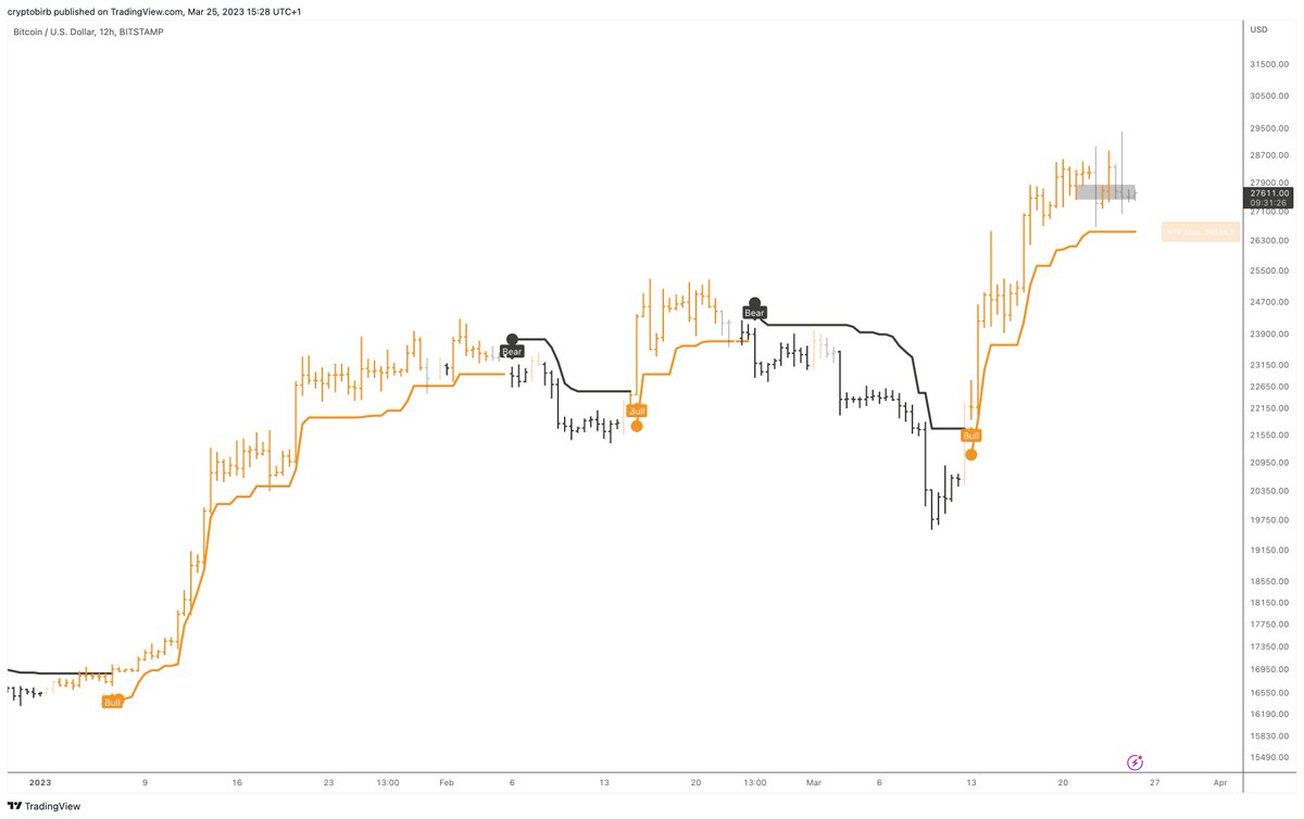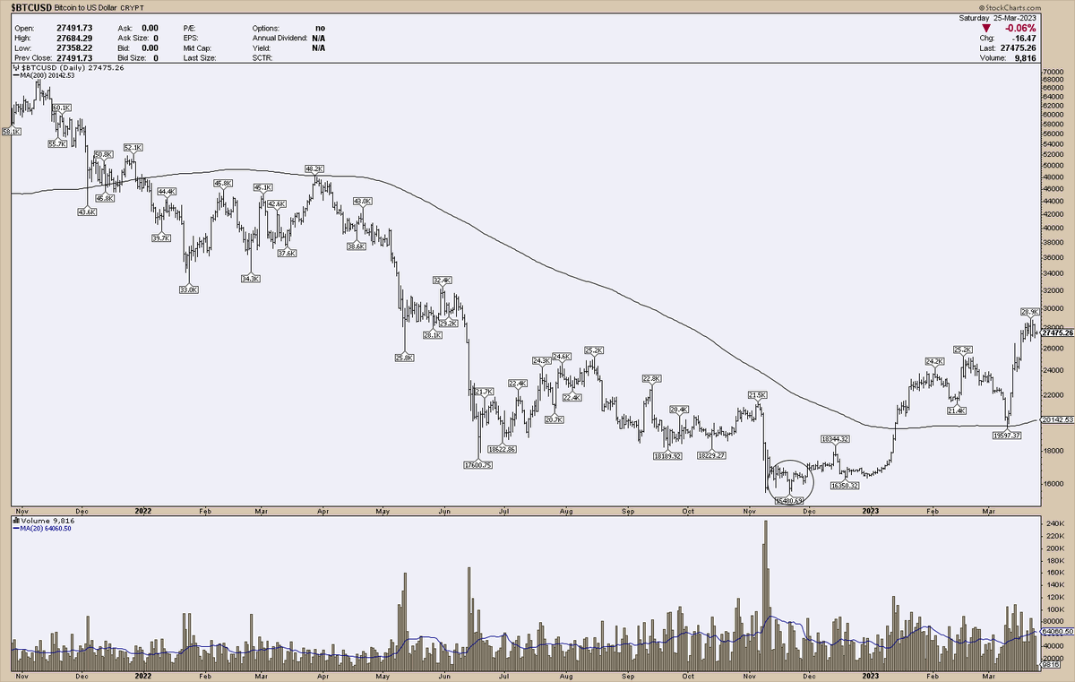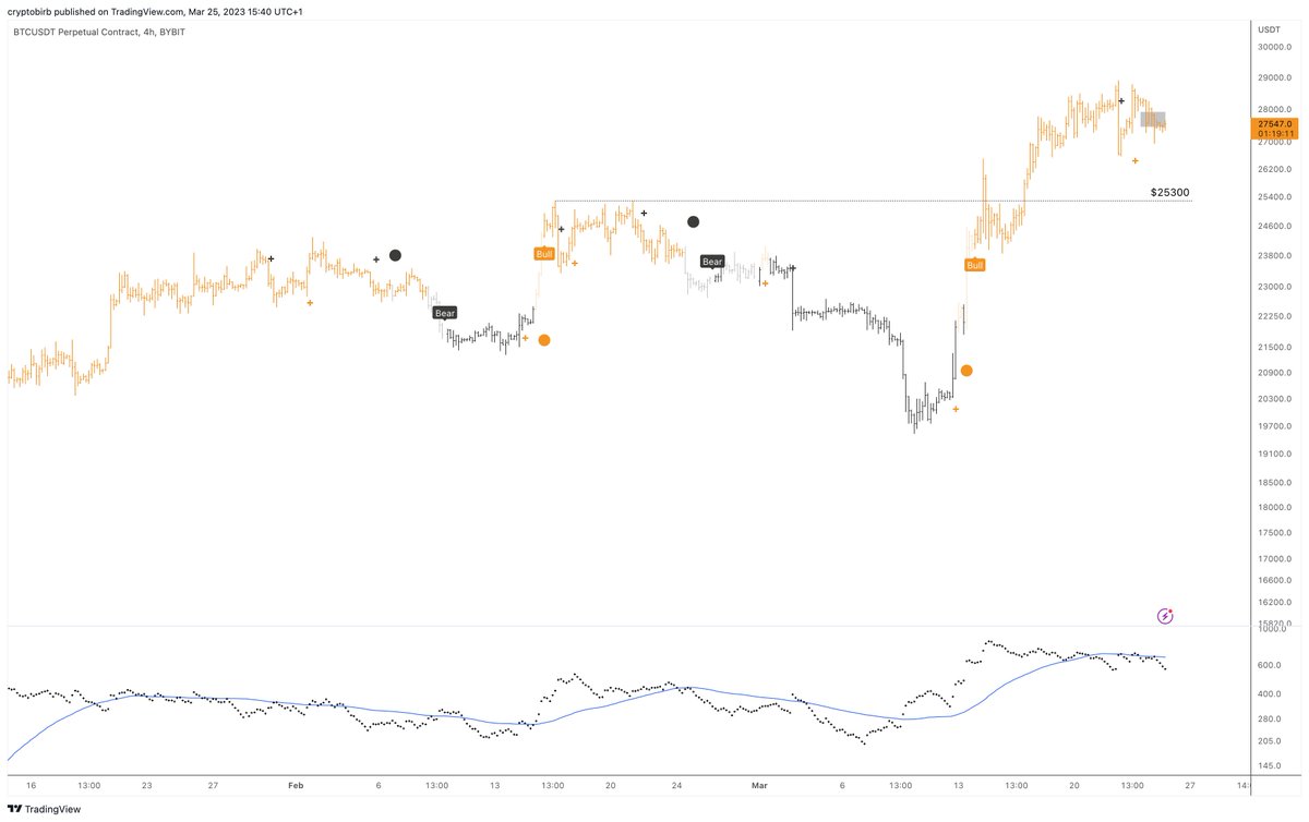 10/ The price action study suggests the prior swing high at $25300 should turn into support now, following the polarity change principle. If this level is retained, the bullish trend may persist higher.