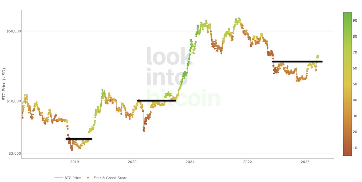 At 64 points on the scale, the fear and greed index suggests a "greed" rating.