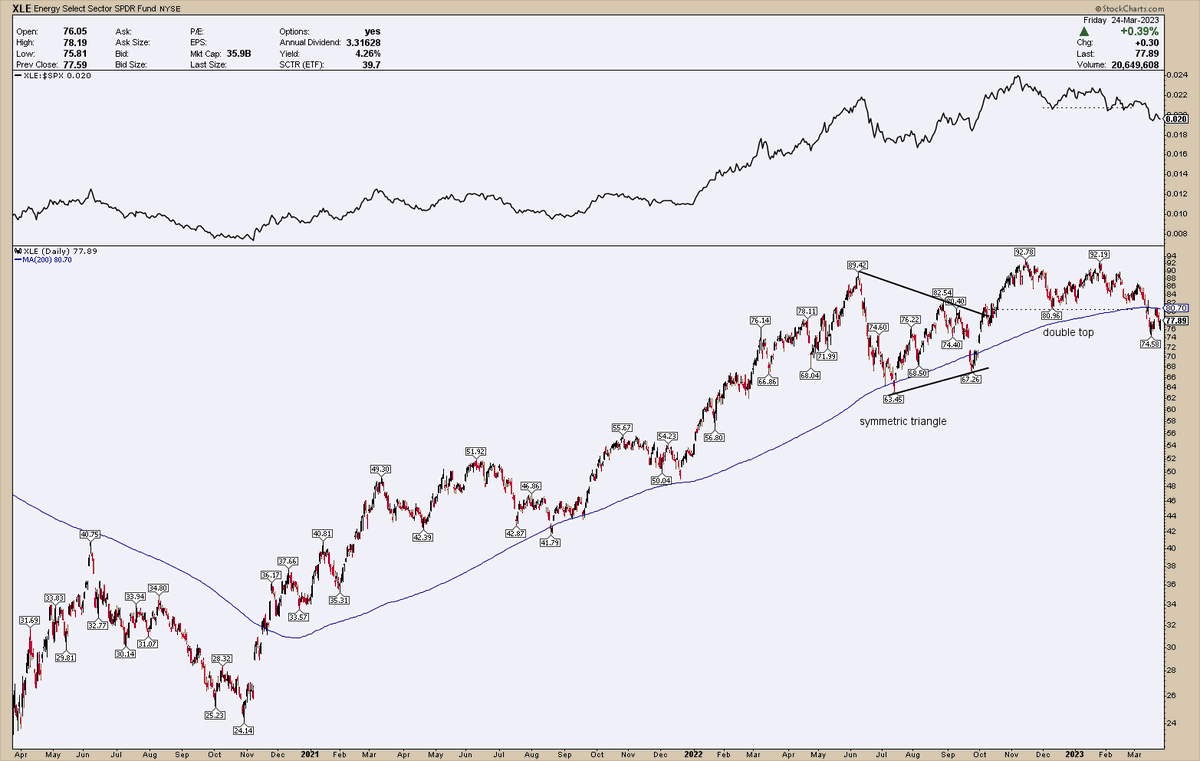 15/ The $XLE has confirmed a double top pattern, breaking below the critical support level at 200SMA.