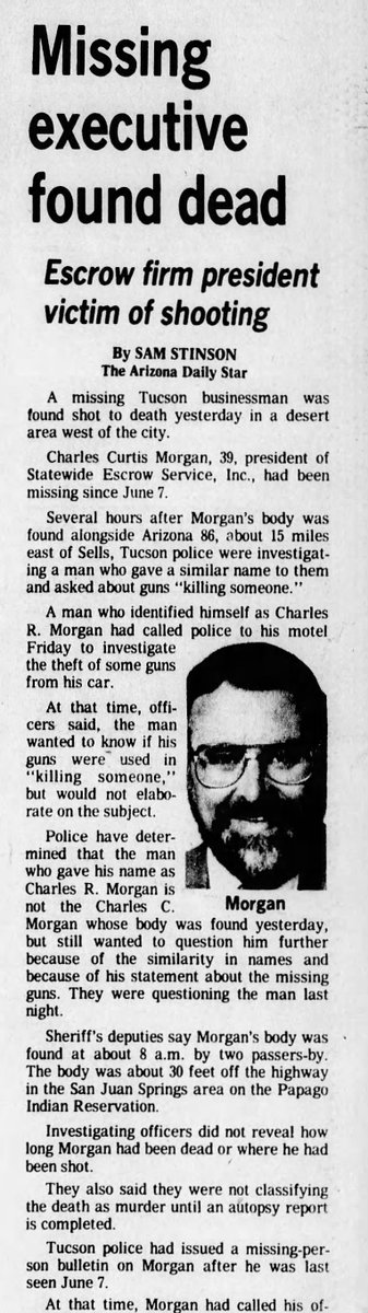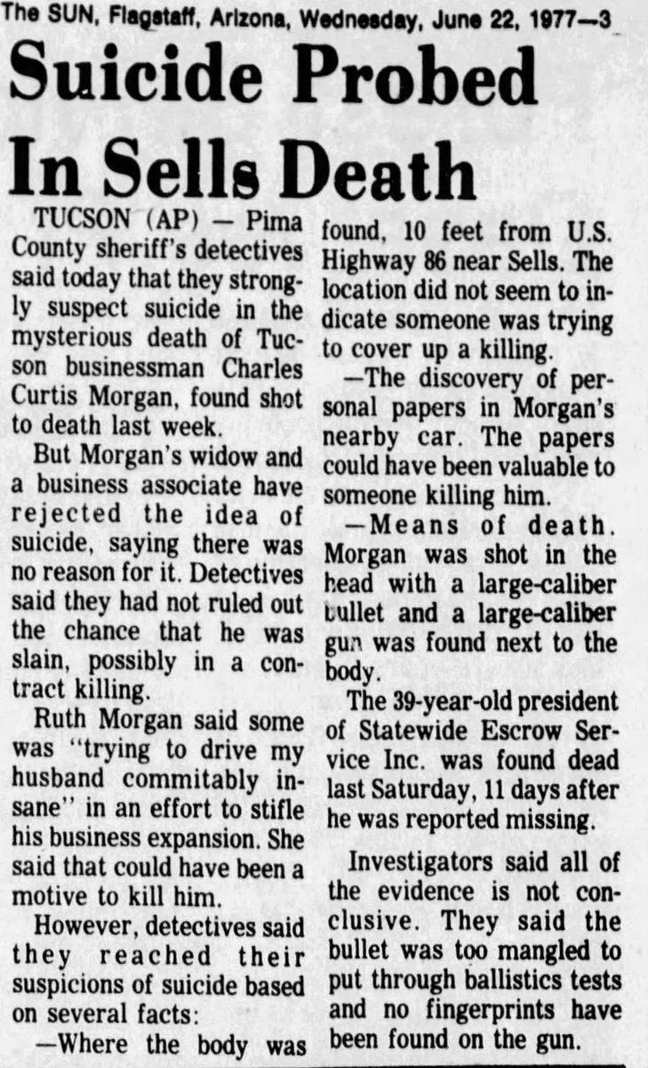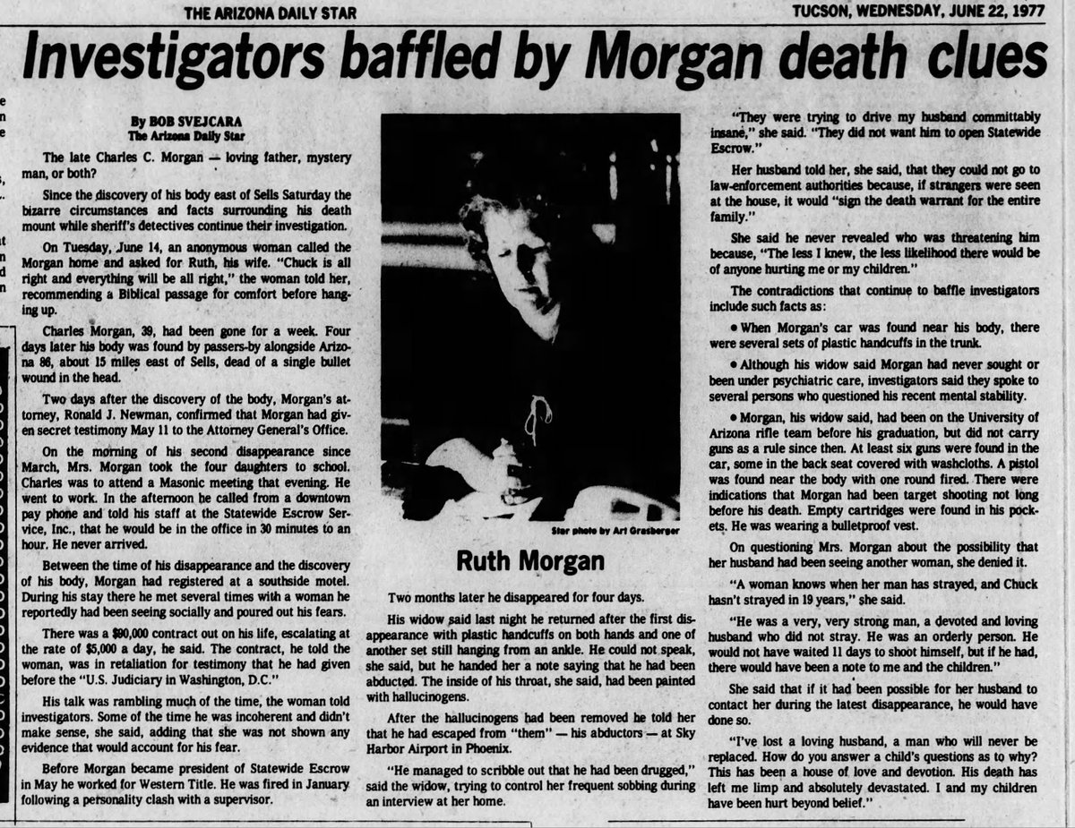 Some background on Morgan. He was described as a successful businessman, an escrow officer who was in the process of buying his own escrow service. Arizona in the 70s was a haven for crime syndicates, due to a state law allowing land to be bought anonymously through a blind trust