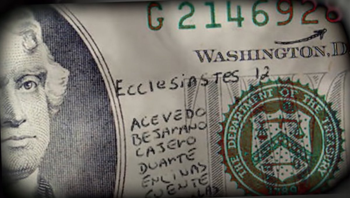 Clipped inside Morgan's underwear was a $2 bill. On the front of the bill were seven Spanish names from A to G. "Ecclesiastics 12" was also written on it, with verses 1 through 8 indicated by arrows drawn on the serial number of the bill.