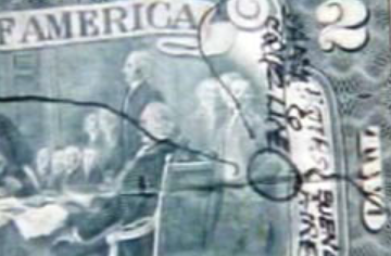 On the back of the bill was a crude map showing roads between the Tucson and Mexico border, as well as the towns Robles Junction and Sasabe. Allegedly, these towns were known for smuggling. The signers of the Declaration of Independence were numbered 1 through 7.