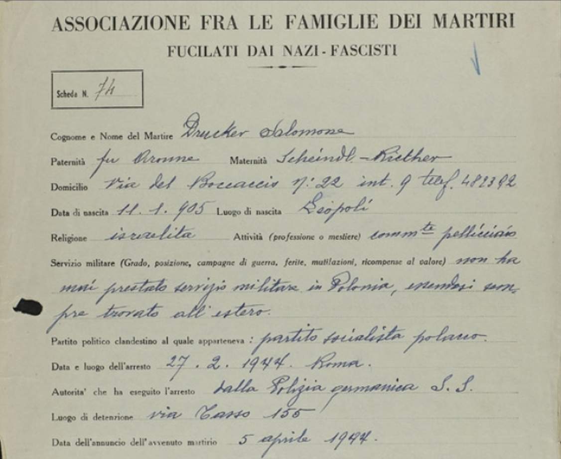 Venne inserito poco prima del trasferimento alle Fosse Ardeatine in sostituzione di un altro ebreo prigioniero.
