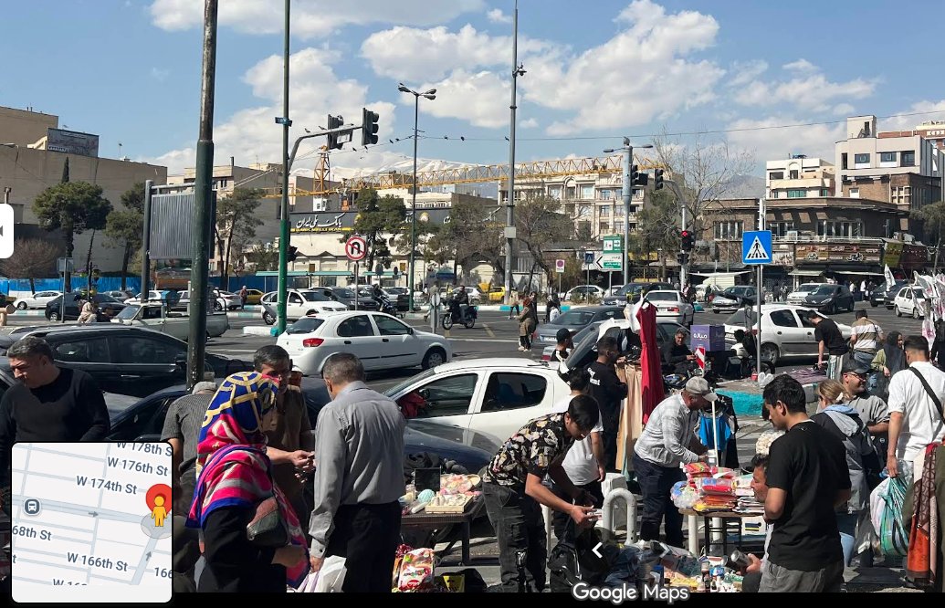 Through a reverse search, we can find this video (left) which was shared by @mamlekate on 15 March. It shows a Basij member near a number of tents on a street in east Tehran.