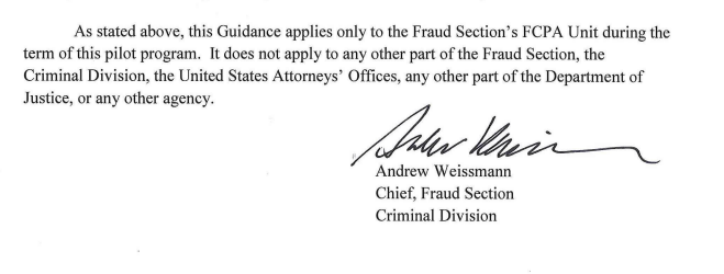 To assume that position, Weissmann took a leave from his Department of Justice post.