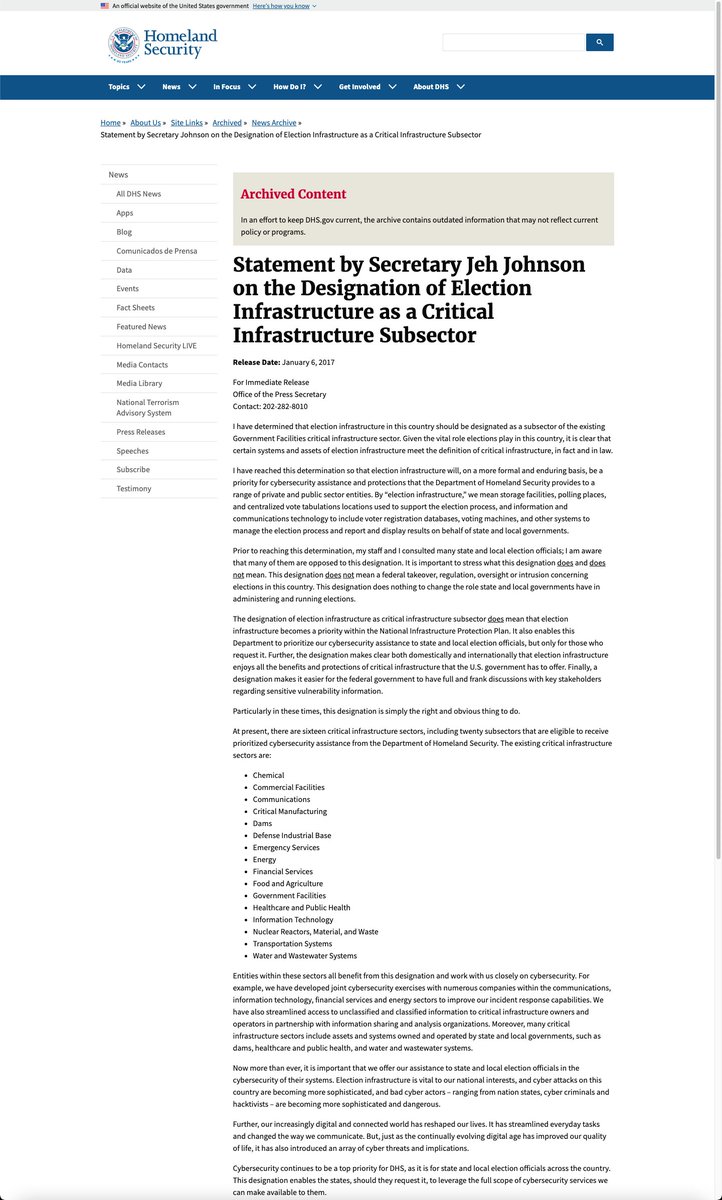 On January 6th, 2017 - Jeh designated Election Infrastructure as a Critical Infrastructure Subsector.