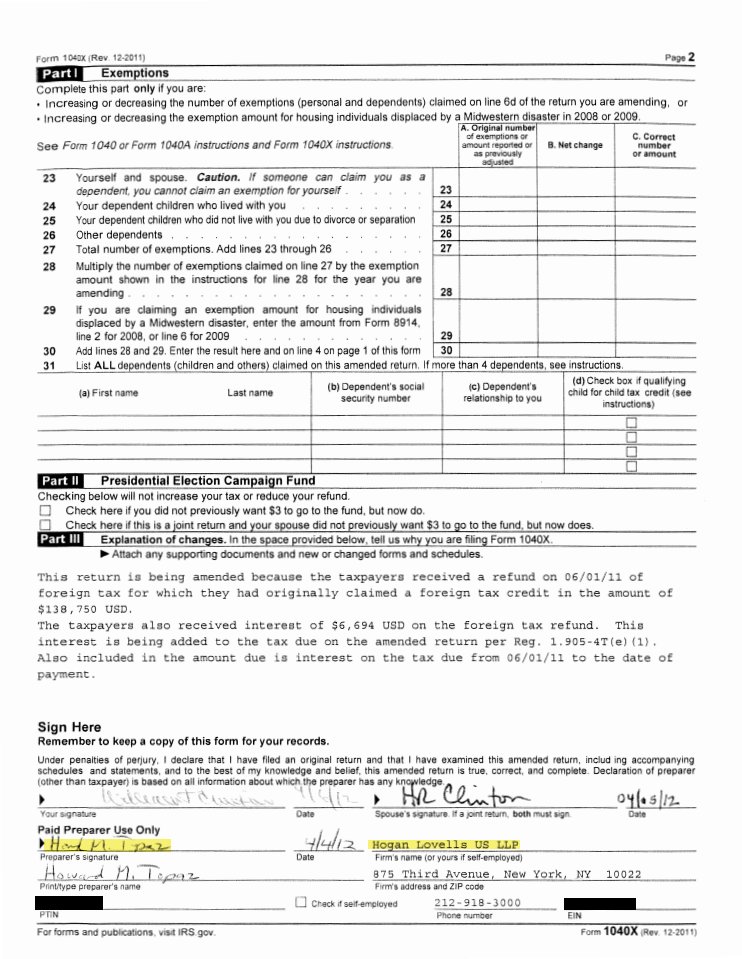 Howard Topaz was the tax lawyer who filed income tax returns for the Clintons’ 2004 + 2007-14 joint tax returns - which were prepared by Hogan & Hartson/Hogan Lovells.