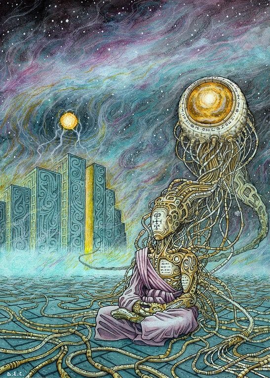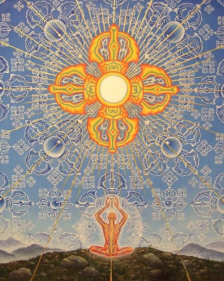 By seeing and identifying with the vital, psychic and spiritual energies of the subtle bodies the viewer may broaden their identity beyond the physical body and provide for the influx of healing energies from a more perfect spiritual template.