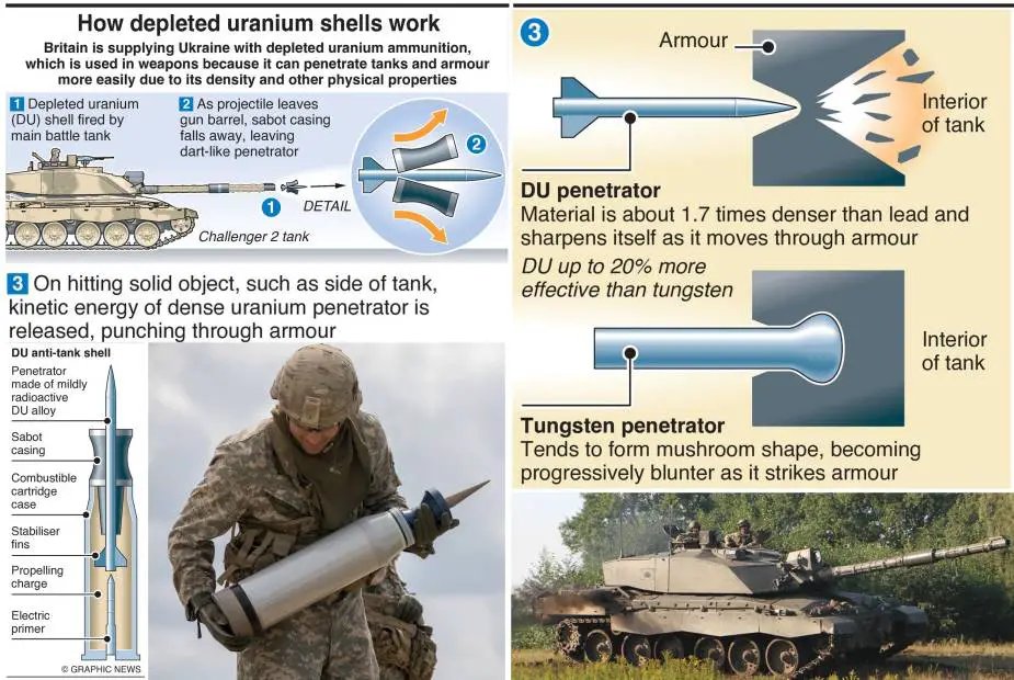 Le Royaume Uni a donc annoncé il y a quelques jours envoyer des obus à l'uranium appauvri avec les chars Challenger qu'il cède à l'Ukraine. Pour 14 chars, on parle environ de quelques centaines d'obus maximum... 2/ bbc.com/news/world-eur…