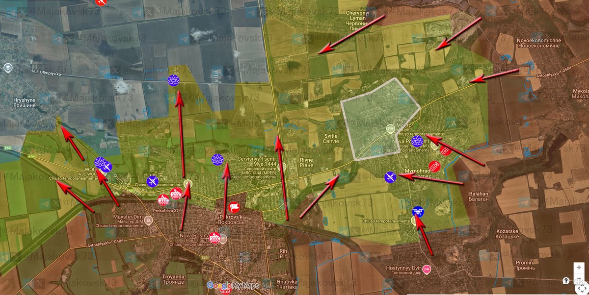 2\#Ucraina Fronte di Pokrovsk: Ampliato controllo nella direzione di Rivne, ed ampliata grey sia verso Svitle che a nord verso Rodynske. intera zona, compresa mirhorad s'avvia a diventare una grey zone