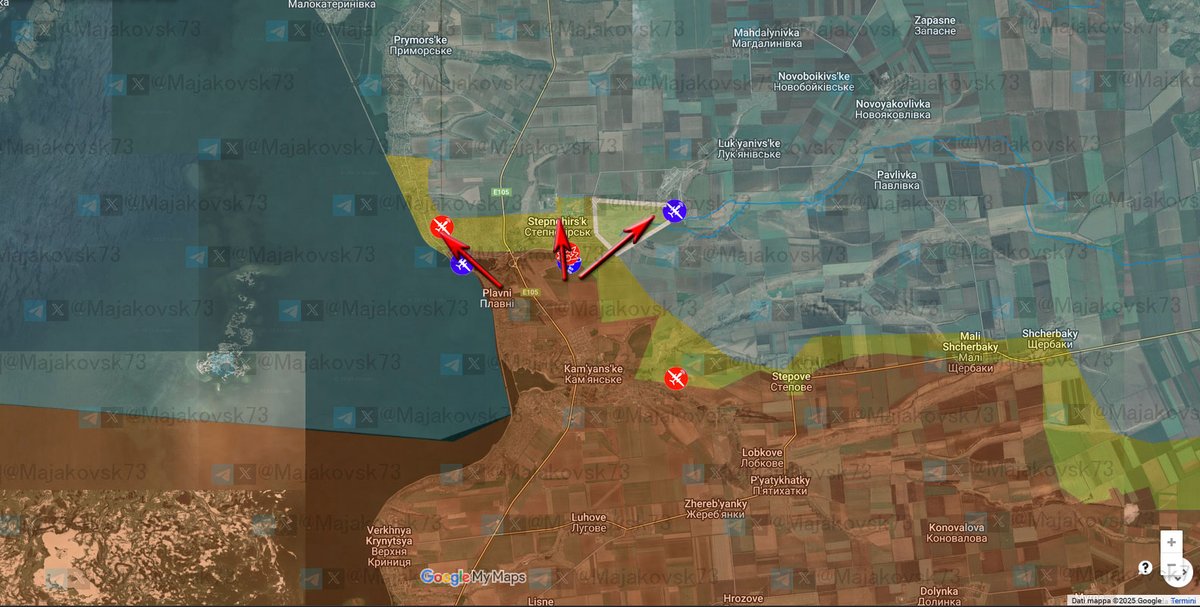 7\#ucraina Nella zona sud del fronte, da registrare attacchi russi nella zona di ivanivske, e tentativi falliti di allargare verso stupockhy, respinti da forte fuoco artiglieria