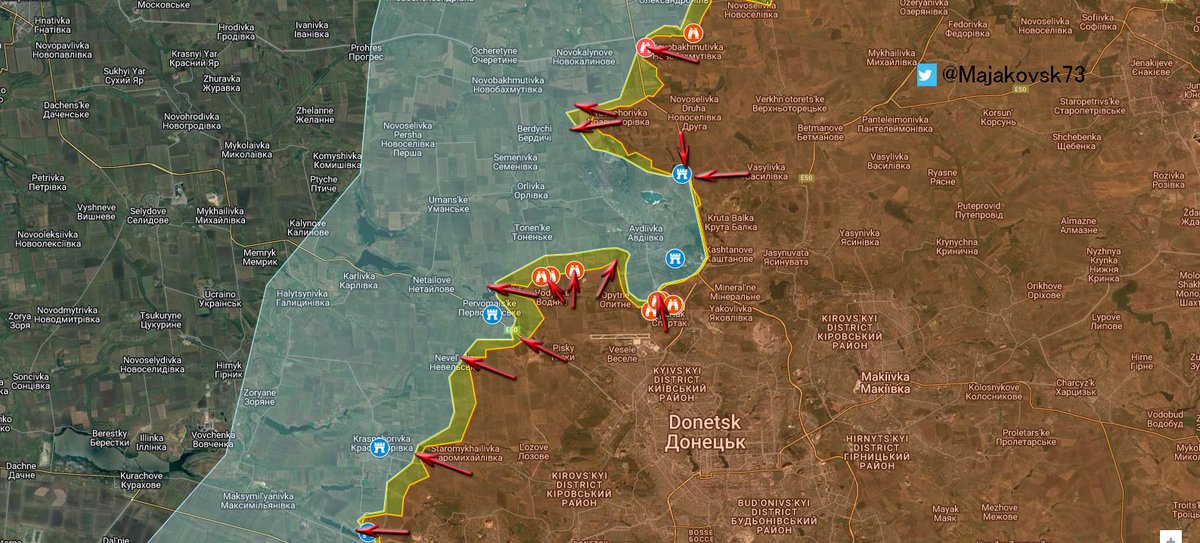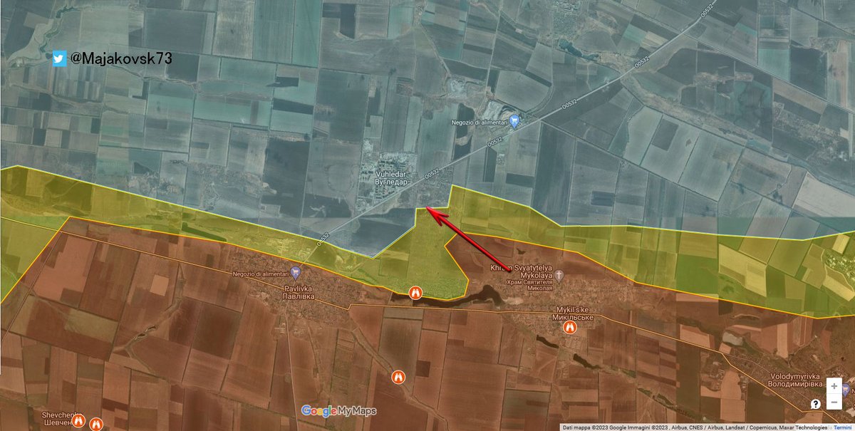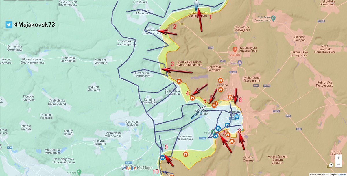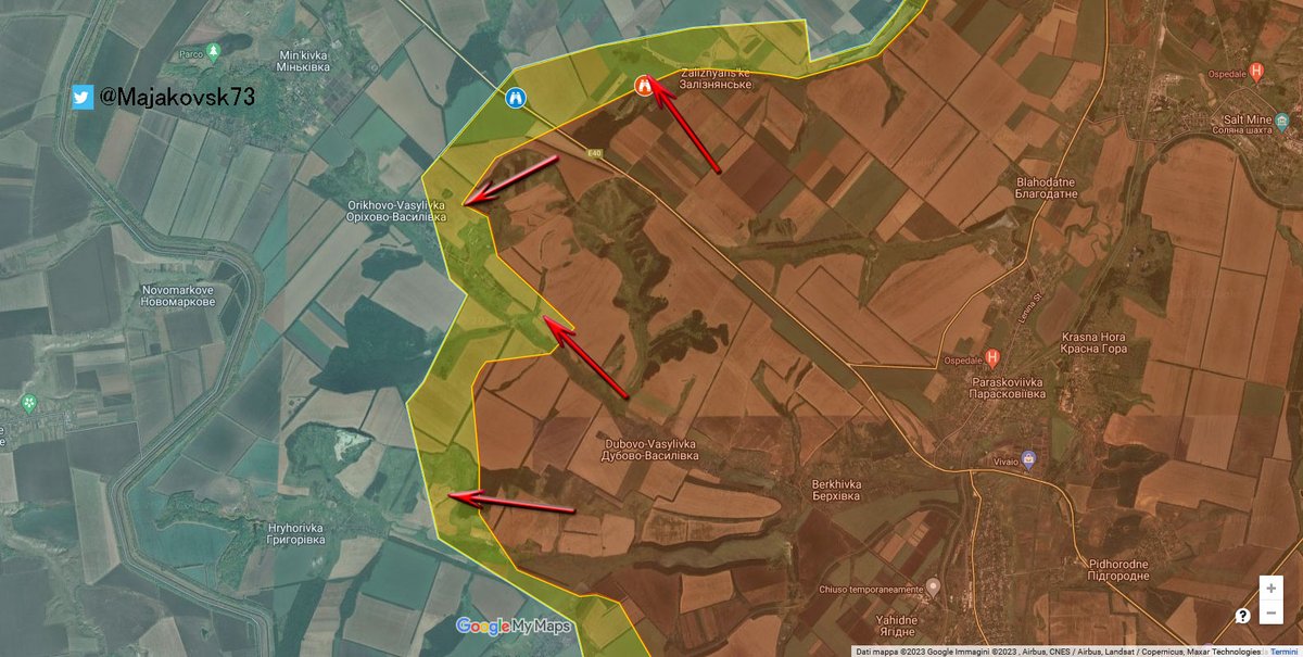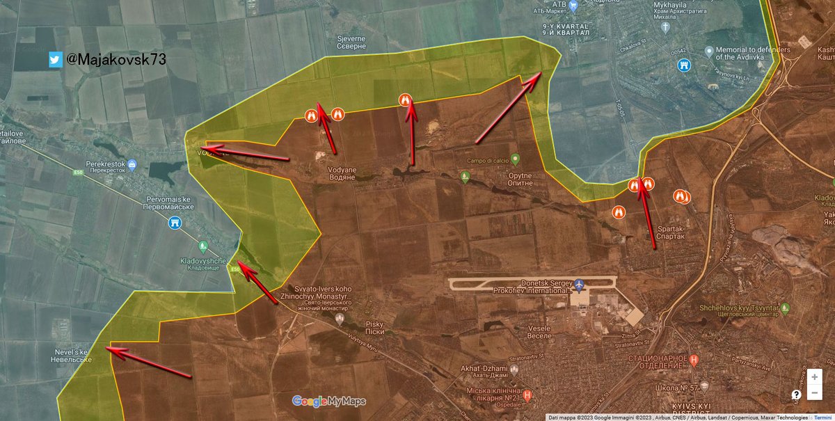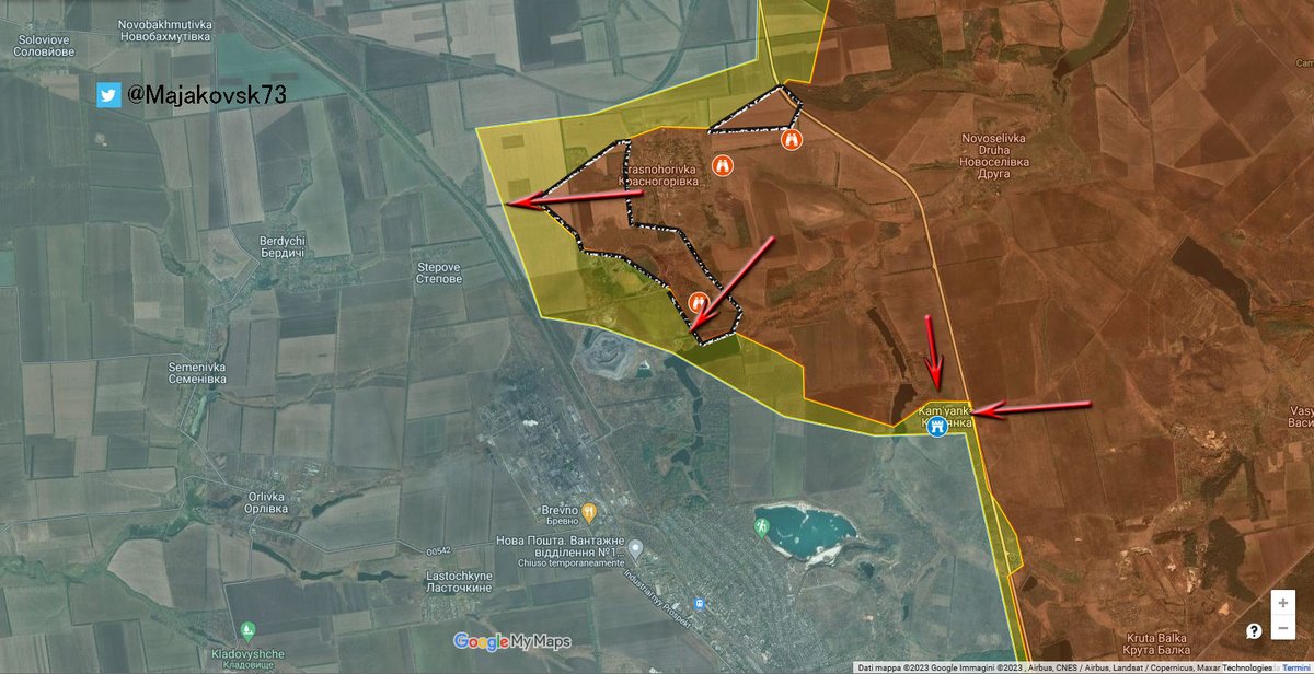 9\#ucraina Nella Zona Nord-est di Avdivka, a Novabakhmutivka russi sono arrivati sotto collina e provano ad assaltarla. Krashanorivka direttrici verso stepove e verso Novabakhmutvika (l'altra a nord, non quella citata). Kamianka ancora non in controllo russo.