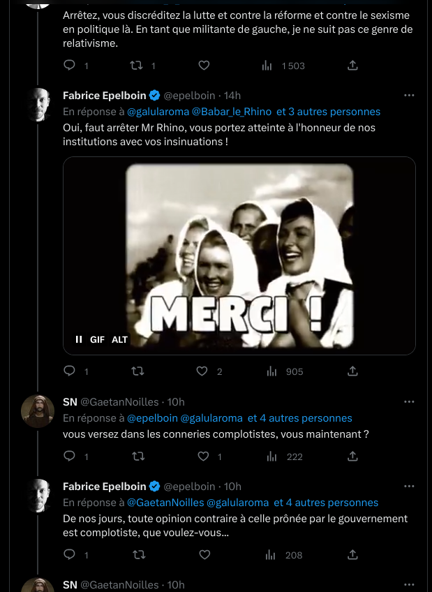 Et on a vu ce genre de rhétorique chez une bonne partie des gros comptes comploplos qui prétendent "redonner la parole au Peuple", se "libérer de la pensée unique imposée par l'Élite", etc.