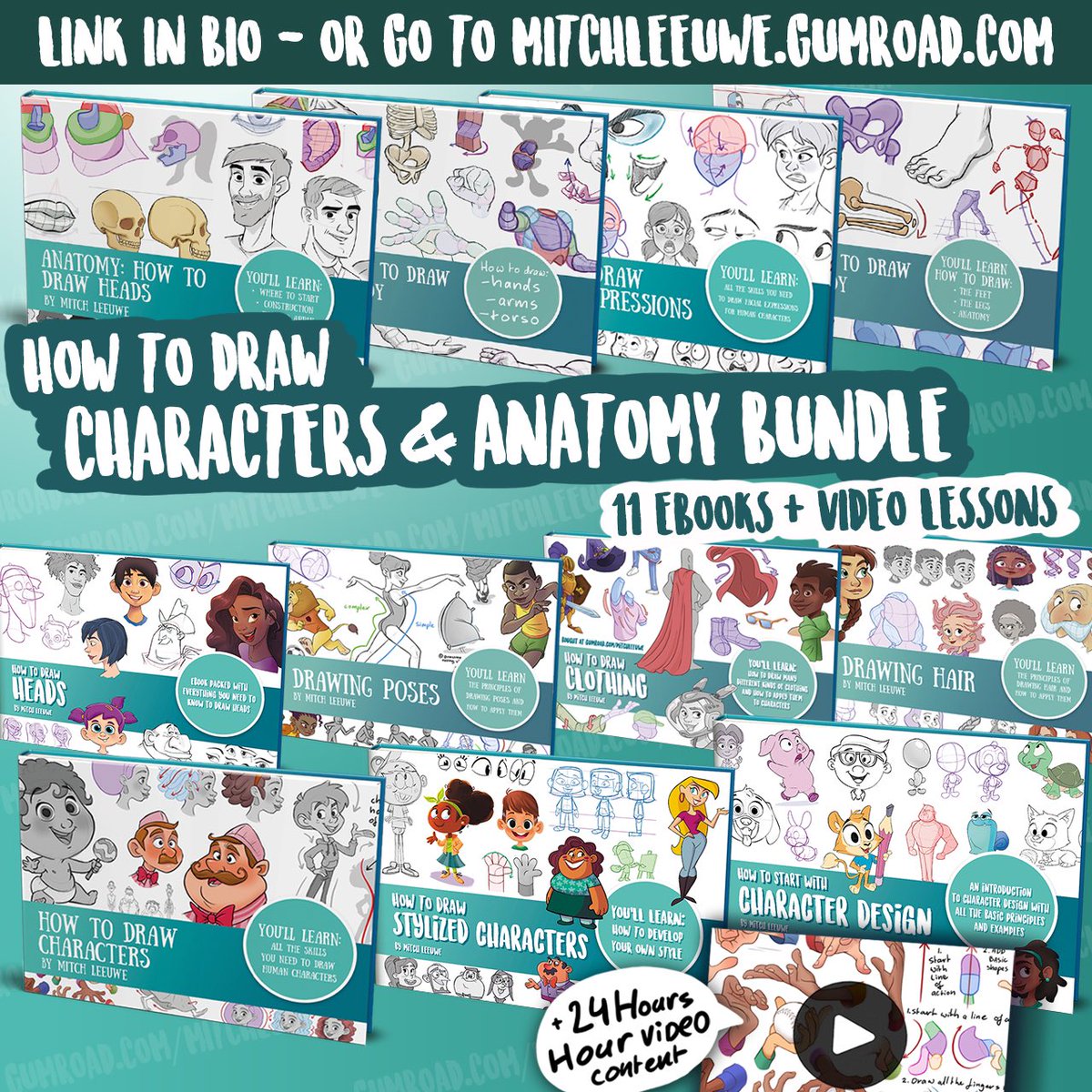 Learn more about drawing anatomy and characters in my characters and anatomy bundle ebooks and videos on gumroad.com/mitchleeuwe and use the code: 2023 for a 25% discount!
