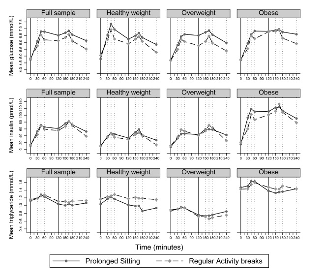 - Interrupting periods of prolonged sitting by regularly performing resistance exercise breaks in the evening reduces postprandial glucose and insulin response in the overall study population by 32% and 26% respectively.