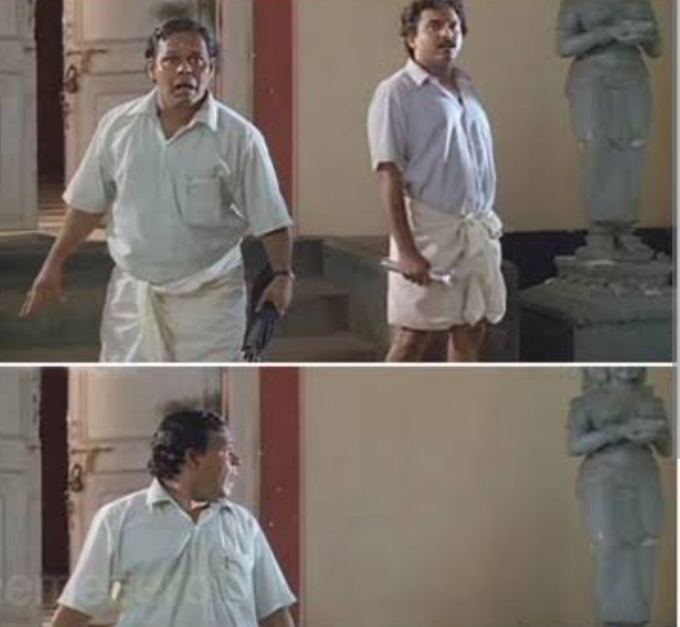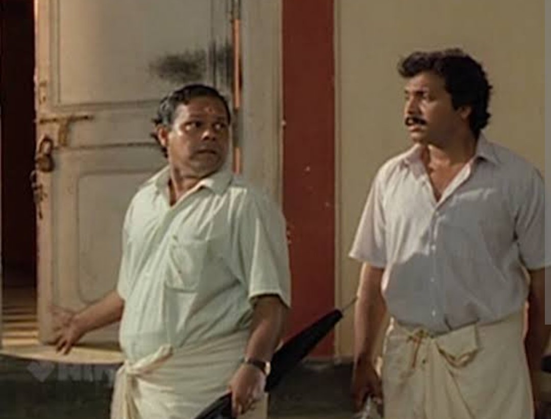 Innocent's iconic roles and memorable sequences have all found an independent existence outside of the films they were a part of ..Many of his lines are now part of our daily lingo ... (A thread) 1. Mannar Mathai's mundu scene in Ramji Rao Speaking...("Nee mundu.." )