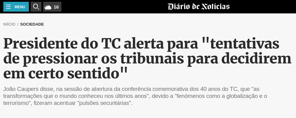 Grave, grave, e nunca antes visto no nosso regime democrático, é termos o Presidente do Tribunal Constitucional queixar-se de pressões sobre o Tribunal Constitucional. 12/ dn.pt/sociedade/pres…