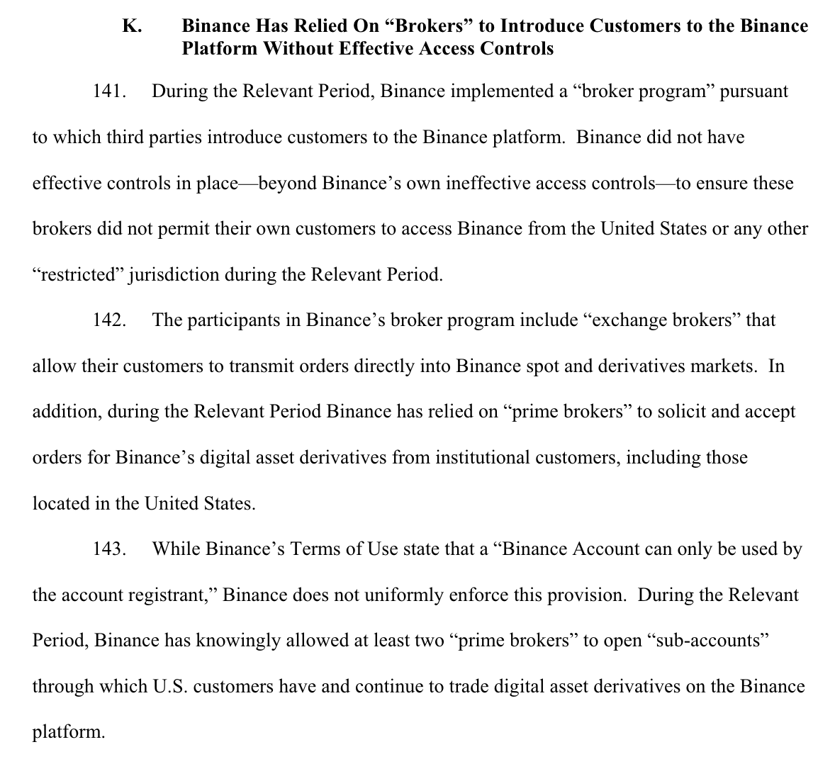 CFTC alleges Binance was aware of and even encouraged offshore "brokers" that operating on the exchange, some of which were processing US customers' transactions.