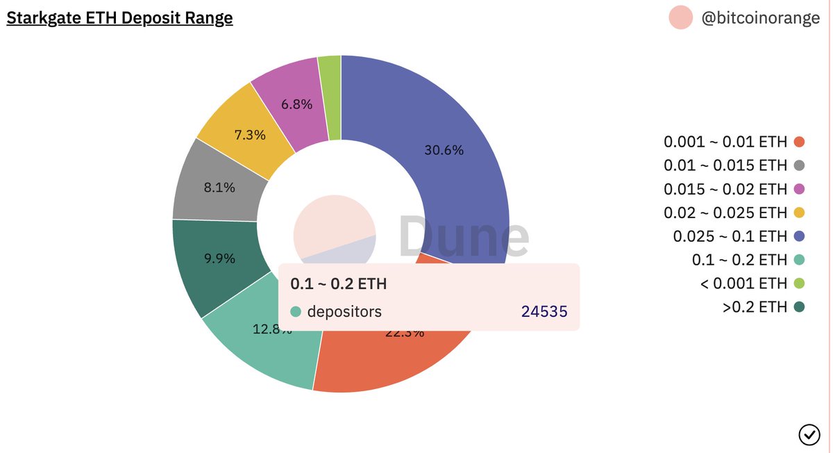 Borsadan metamask cüzdanınıza en az 0.12 eth atın, miktar belirtmemin sebebi starkgate köprüsünden 0.1-0.2 arasında eth atan cüzdan sayısının oldukça az olması yani 24.535 cüzdan olması, biliyorsunuz ne kadar az kişi yaparsa airdrop olasılığı veya alınan miktar o kadar artar