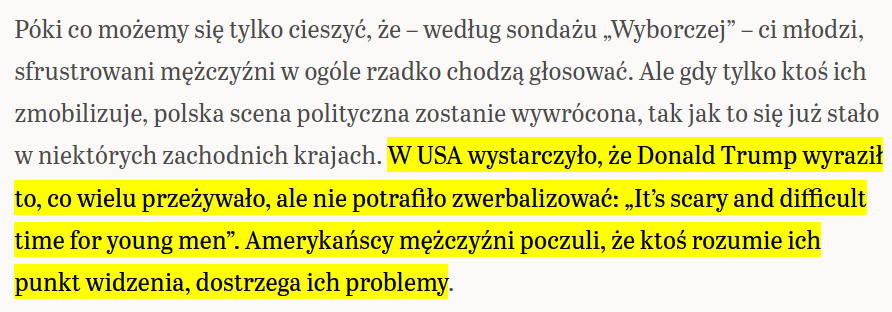 Przypominają mi się teorie, że prezydentura RT może oznaczać lepsze wyniki Konfy w 2027, bo Konfie łatwiej będzie się budować przeciwko 'lewackiemu' rządowi z prezydentem.