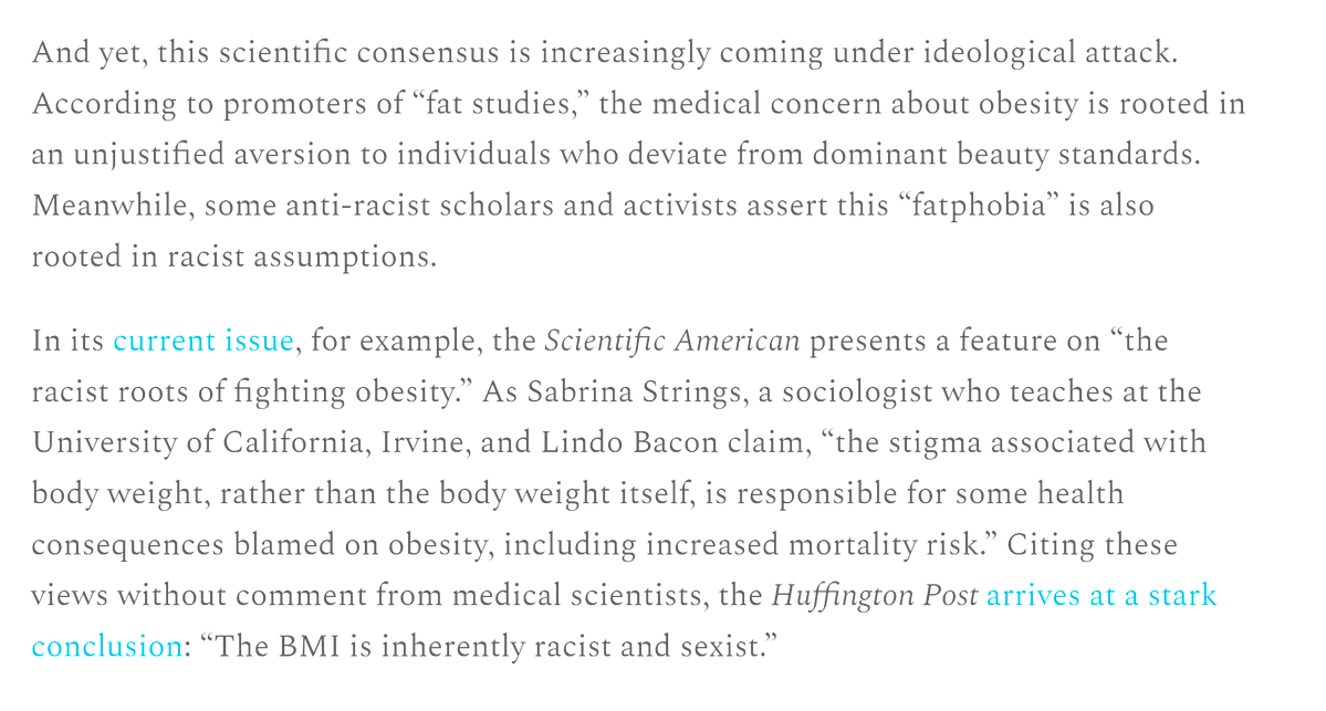 No, the claim emerging from postmodern academia was that the harms associated with fat stigma imposed a psychic burden on patients that was more injurious to health than obesity itself.