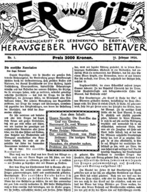 Hugo Bettauer, autore del libro, nel 1924 iniziò a pubblicare la rivista “Lui e lei, rivista settimanale di cultura del vivere ed erotismo".