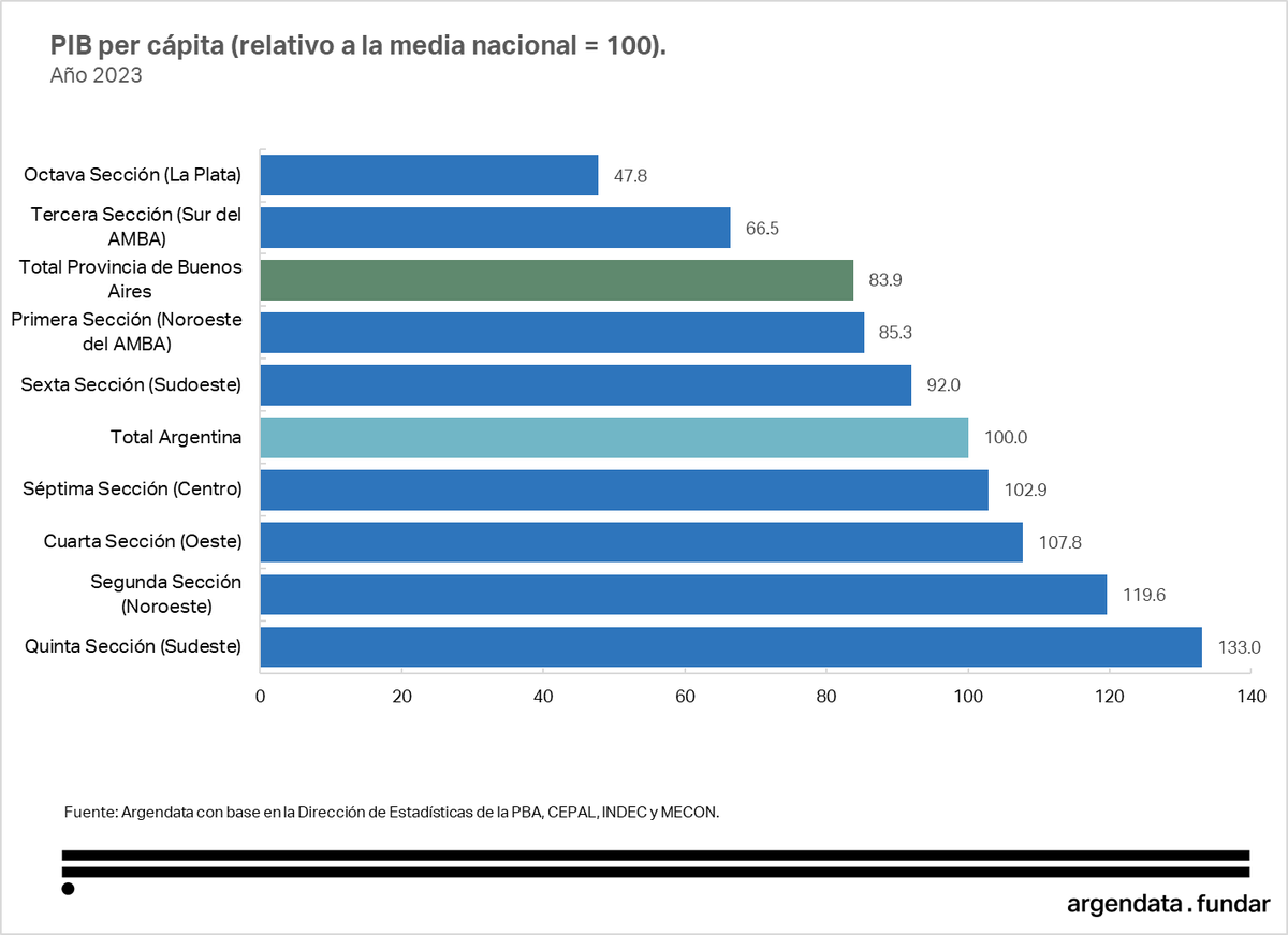 La PBA tiene un PIB per cápita 16% menor a la media nacional.