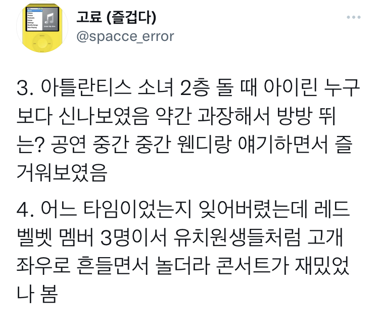 @RVsmtown When BoA was on the 2nd floor during “Atlantis Princess”, #IRENE was the most excited out of everyone 🥺 She seemed to enjoy the concert while talking to Wendy from time to time