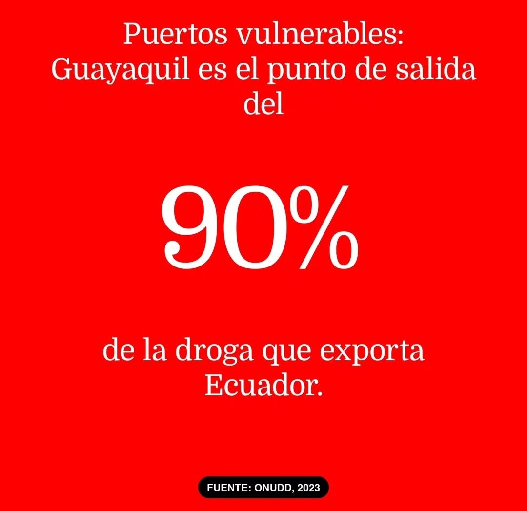 Aunque Ecuador no es un gran productor de cocaína, su posición geográfica y puertos claves (como Guayaquil) lo convierten en un enclave logístico para el crimen organizado. Las cifras reflejan el aumento exponencial en el flujo de cocaína y su distribución por el Pacífico.
