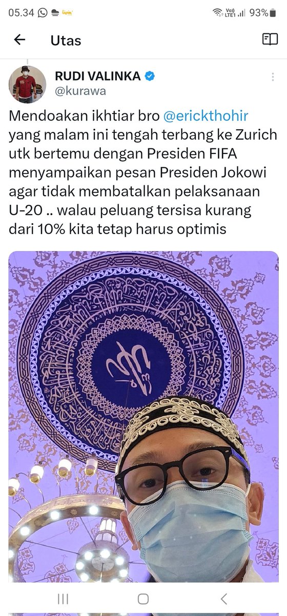 Sementara Erick Thohir ditugasi presiden utk bertemu dengan FIFA. Walau agak mustahil Erick Thohir tetap berusaha menyampaikan Optimisme karena kedekatan beliau dengan presiden FIFA.